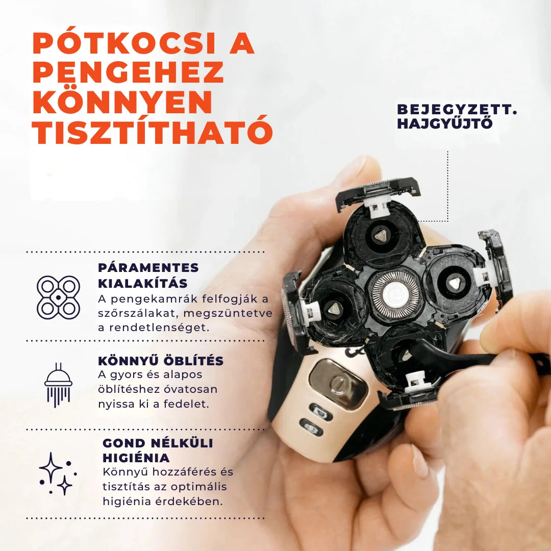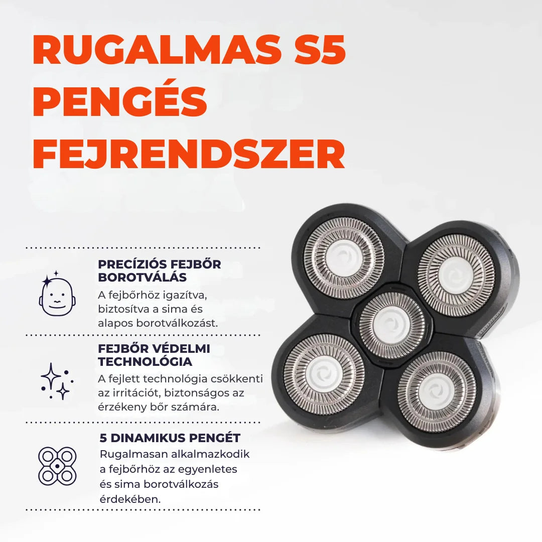 Kényelmes kézben tartásra tervezve, lehetővé teszi a fej könnyű borotválását teljes irányítással.