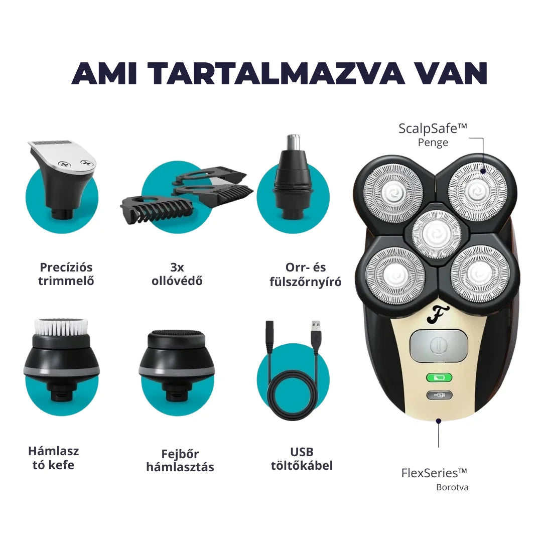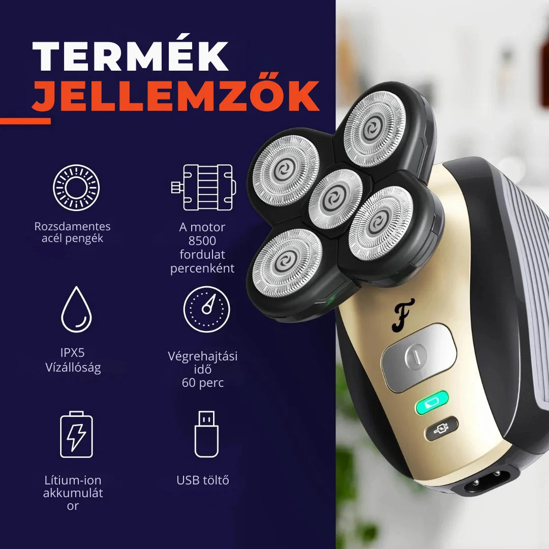 Tökéletesen borotvált fej mindössze 90 másodperc alatt — erőfeszítés nélkül!