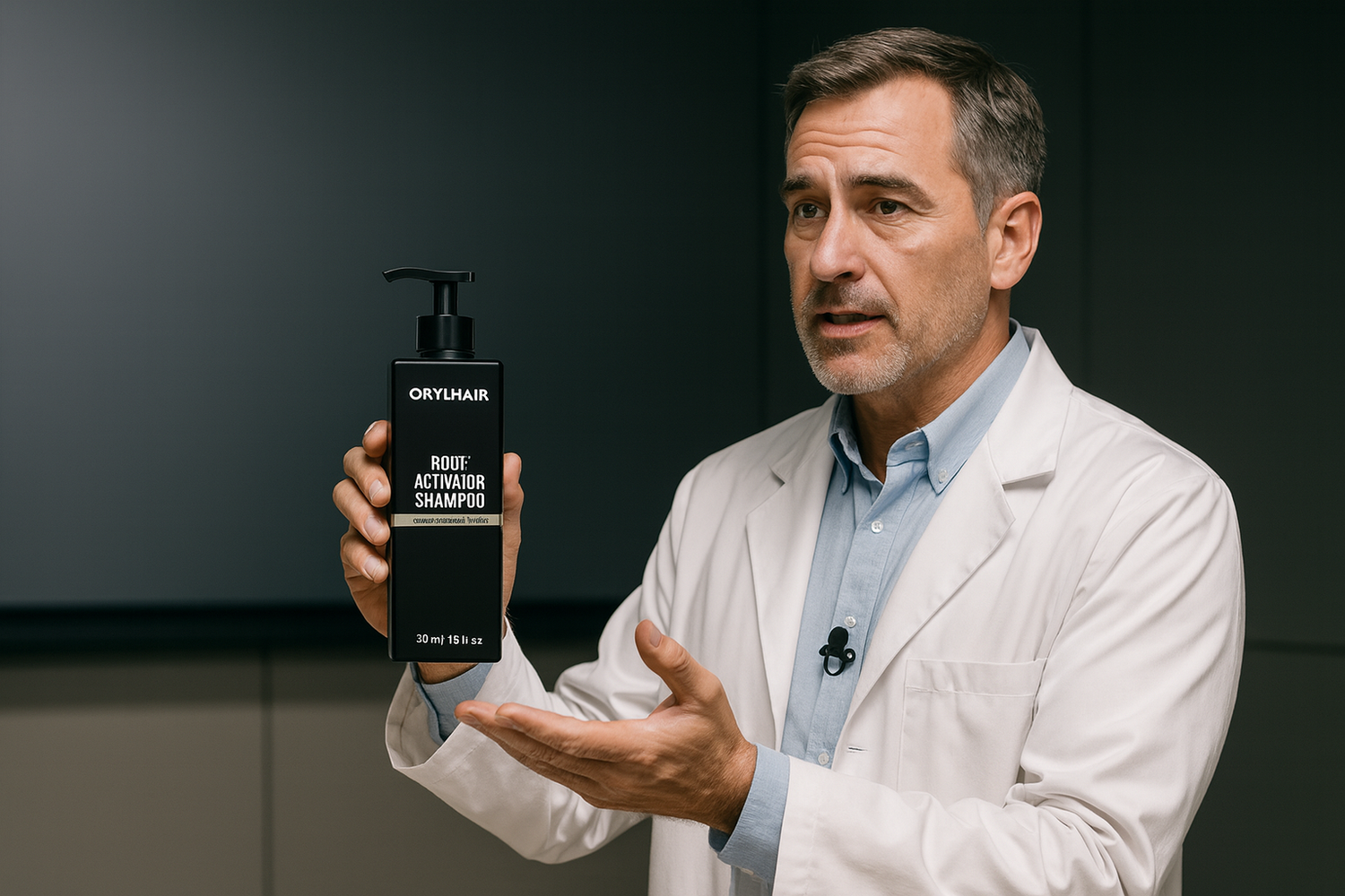 Amit az ORYLHAIR céloz: helyileg hatni (kímélő helyi anti-DHT), aktiválni a mikrokeringést (masszázs + hatóanyagok) és megerősíteni a hajszálat a dúsabb hatásért.