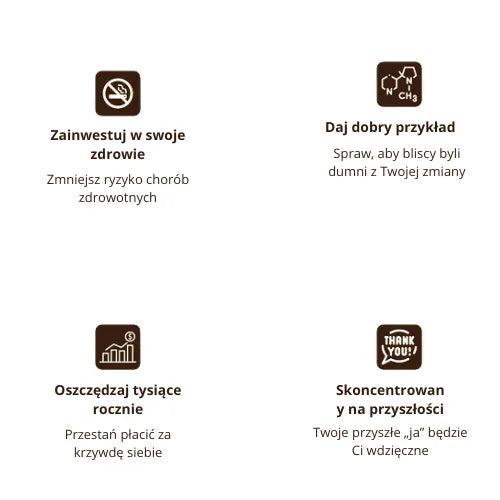 To nie tylko nikotyna. Rytuał od ręki do ust, obsesja ustna, głęboki wdech i wydech tworzą potężny cykl nawyku. Plastry lub guma nie przerywają tego cyklu, a większość e-papierosów nadal zawiera nikotynę.